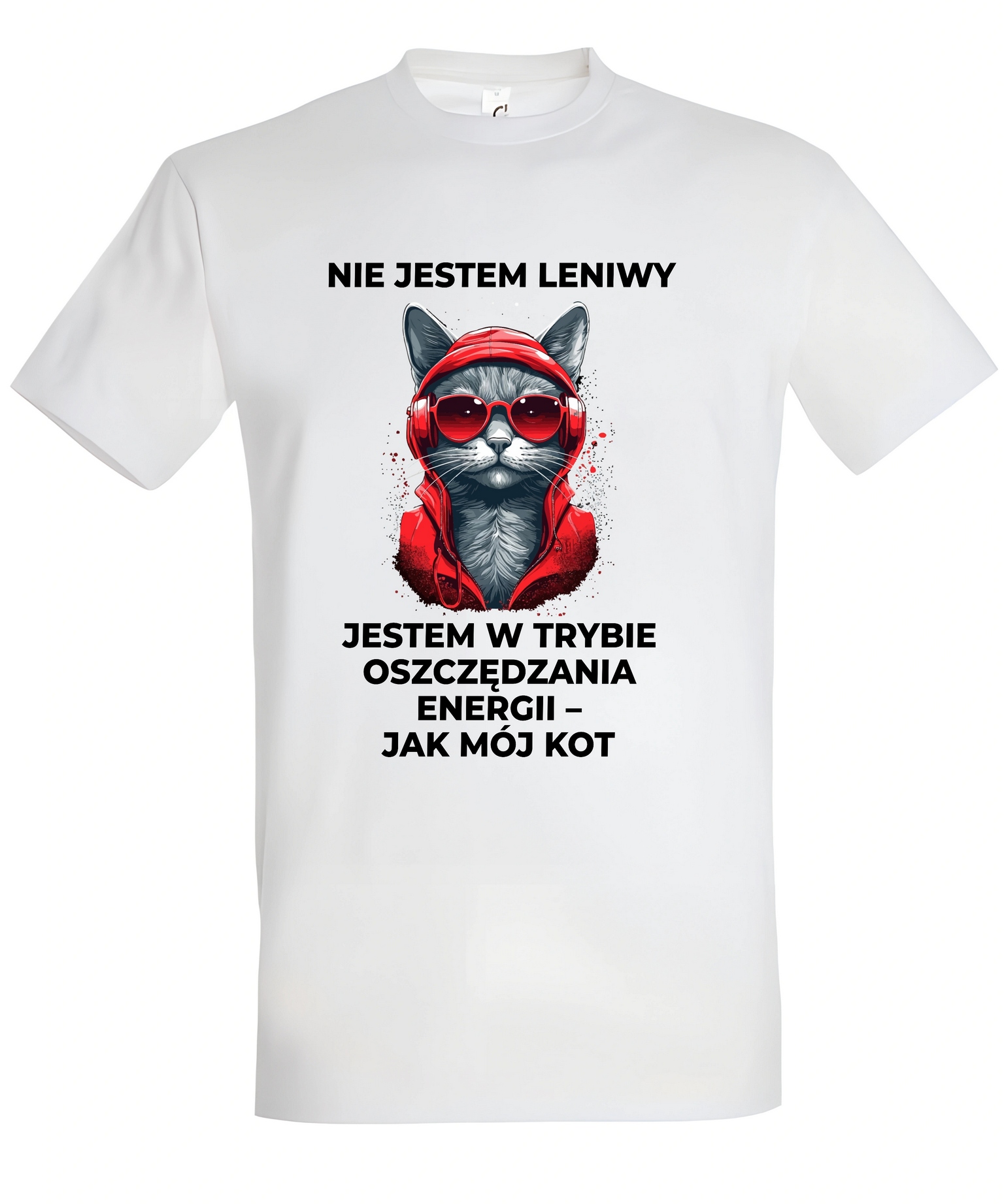 Zrelaksuj się i wyraź swój styl z naszą nową oversize koszulką z kotem, która jest doskonałym wyborem dla każdego, kto ceni sobie komfort i oryginalność. Koszulka ta jest ozdobiona zabawnym obrazkiem kota w nausznikach, relaksującego się w spokoju, co doskonale komplementuje napis „Nie jestem leniwy, jestem w trybie oszczędzania energii – jak mój kot”. To idealny sposób na wyrażenie swojej osobowości oraz pokazanie, że czasem warto zwolnić i odpocząć, naśladując naszych futrzanych przyjaciół.